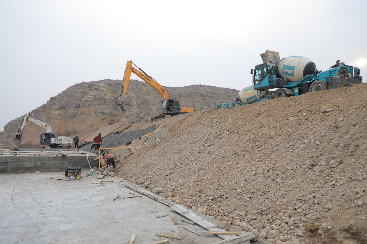 Loyiha qiymati 4,9 mlrd.so‘m bo‘lgan to‘g‘on qurish ishlarida tuproq ishlari 50%, betonlash ishlari 40 % bajarilgan bo‘lib, 3 ta ekskavator, 2 ta Avtosamasval, va 3 ta boshqa yuqori unumli texnikalar ish olib bormoqda.